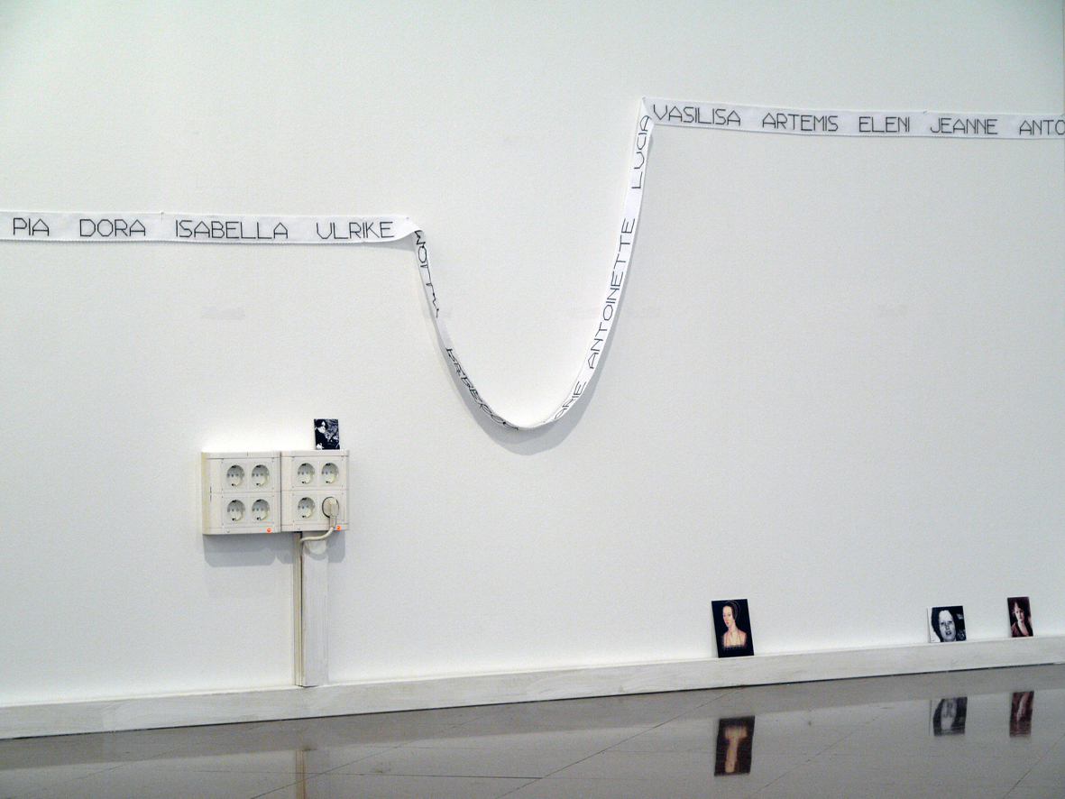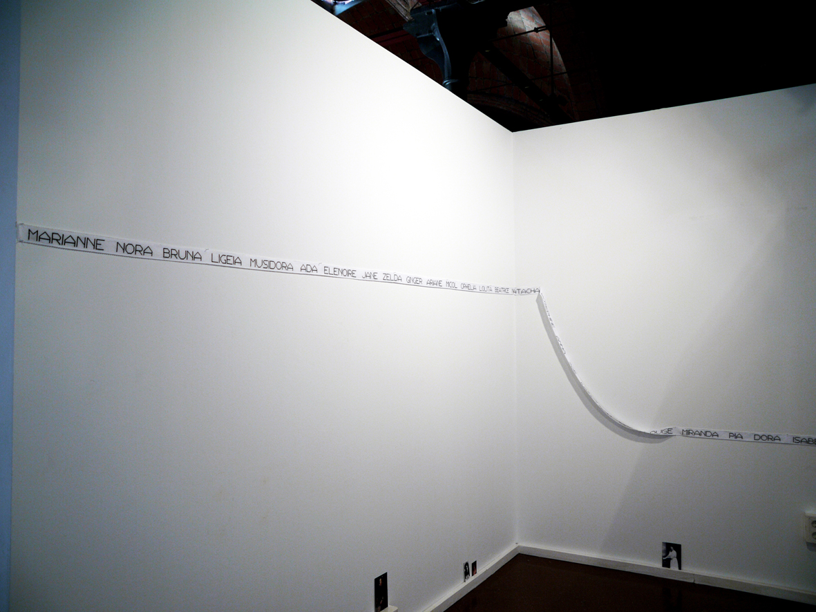 As a starting point, an autobiography of a single line: "Anne Boleyn beheaded: four hundred and forty-three years later I was born." The action operates in two fictional directions, the future and the past: possibilities of names for someone to be born - in a simulacrum of playing the reified role of "mother" - and simultaneously the attempt to draw a hypothetical genealogic line - in a simulacrum of playing this time the role of "daughter". About how the concept of identity is diachronic and in all cases related to the milieu, weaving itself according to a more or less random flow of the human factor and its various contingencies.