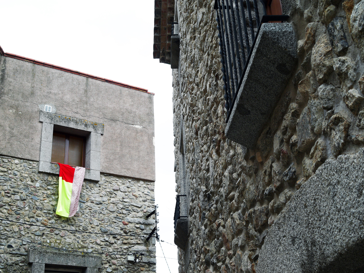 Sobre el discurs de la construcció de la identitat nacional i la compartimentació geogràfica. A partir de restes de teixits s’intenta reconfigurar la sistematització gràfica continguda en la idea de bandera. Es proposa la instal·lació de les peces a balcons de domicilis particulars i edificis institucionals d’una localitat, buscant la implicació dels habitants, convertits transitòriament en manifestants de continguts discursius oberts.